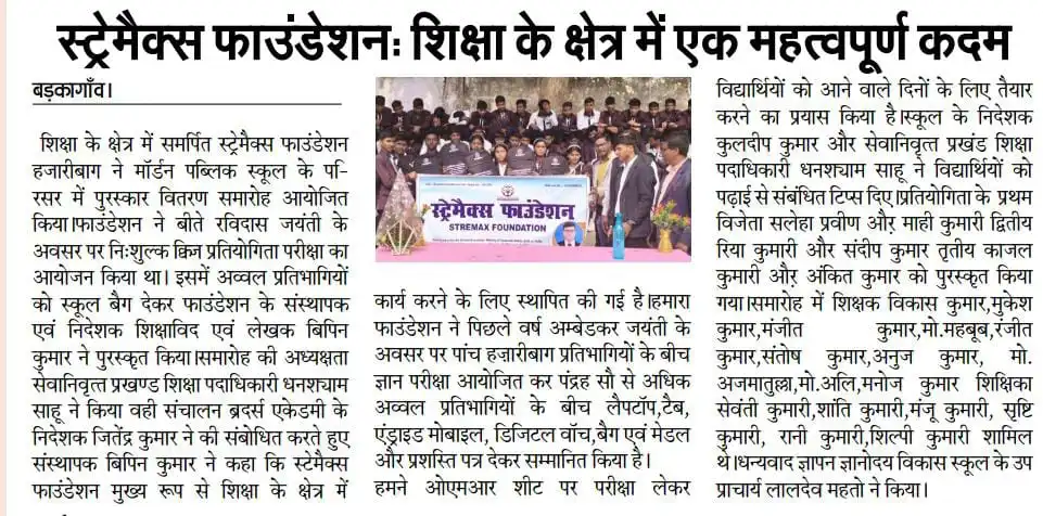 ' संत रविदास जयंती: क्विज प्रतियोगिता एवं बैग वितरण 2025 '